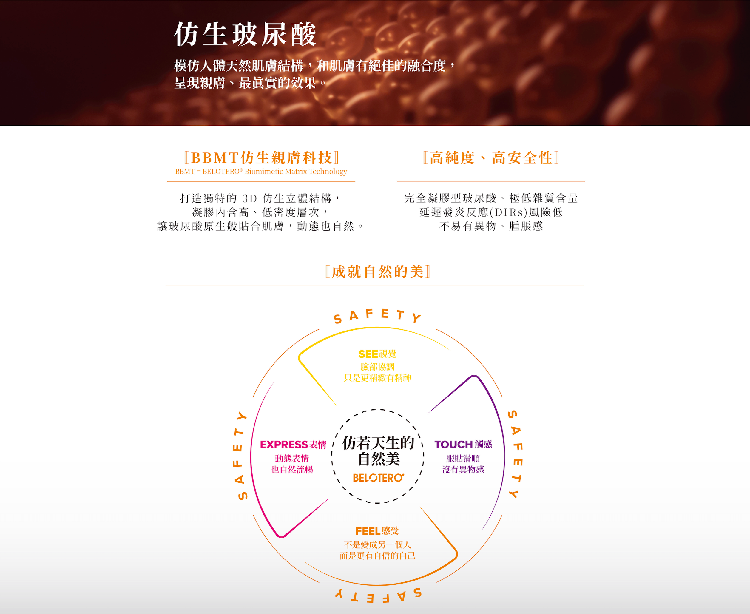 BELOTERO 保柔緹發展仿生親膚科技 (Belotero Biomimetic Matrix Technology - BBMT)的品牌技術概念。